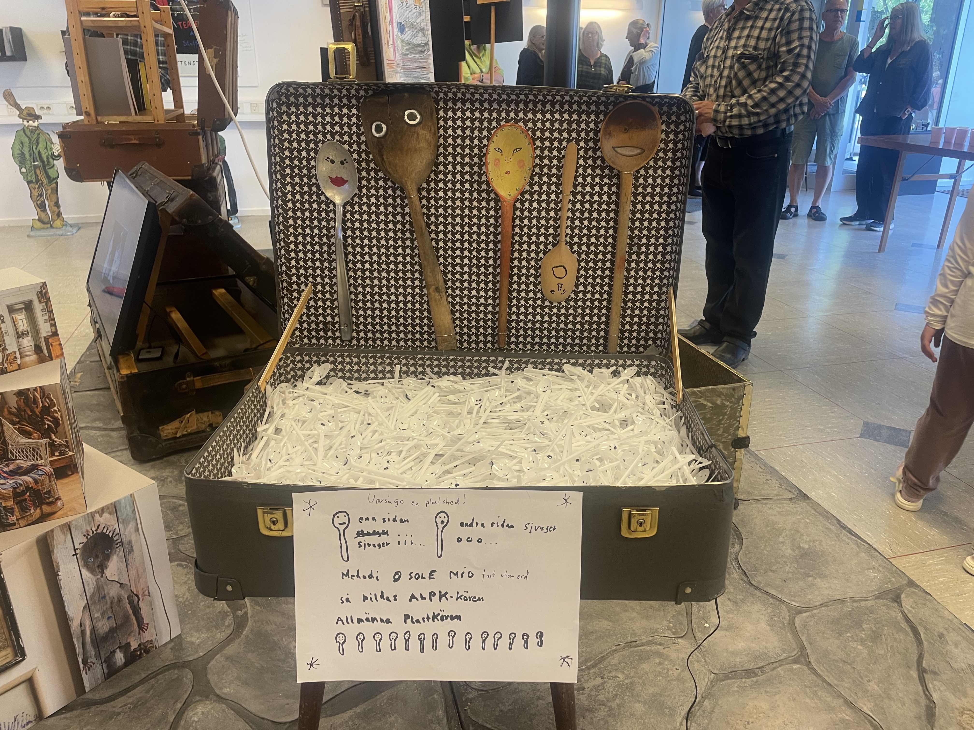 Med den resande utställningen En ask i en ask i en ask återvänder Staffan Westerberg på nytt, den här gången genom en samling resväskor på vift. Var och en av dem visar ett utsnitt ur hans konstnärskap och tankevärld. Liksom i så mycket av det Westerberg har gjort möter vi en blandning av välkända och nya karaktärer, Lillstrumpa och Syster Yster å ena sidan, Familjen Kuk å den andra. Här finns också en kör av skedar som sjunger O–I–O–I–O–I, ett litet bibliotek med manus och anteckningsböcker, en scenografi, och en ask full av askar som vänder ut och in på den lägenhet i Stockholm där Westerberg bott och verkat sedan slutet av 1960-talet. Varje väska är också ackompanjerad av berättelser, tankar och sånger som Westerberg har spelat in under vintern 2023–2024. Det är en personlig utställning som både tittar bakåt över en enorm produktion och avlägsna minnen och försöker få fatt i det som pågår nu.